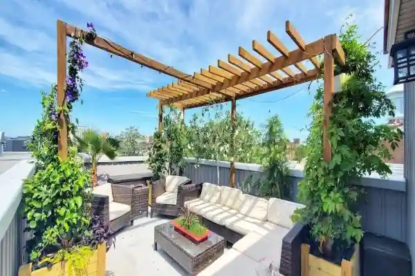 - مرحله 5: اگر فضای بزرگتری باشد، می توان آلاچیق اجرا کرد و در کنار آن از فلاورباکس ها برای آرامش بیشتر استفاده کرد.